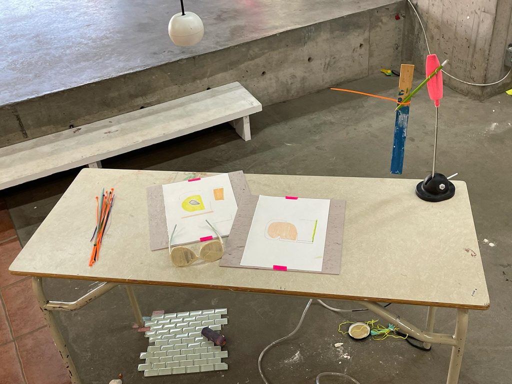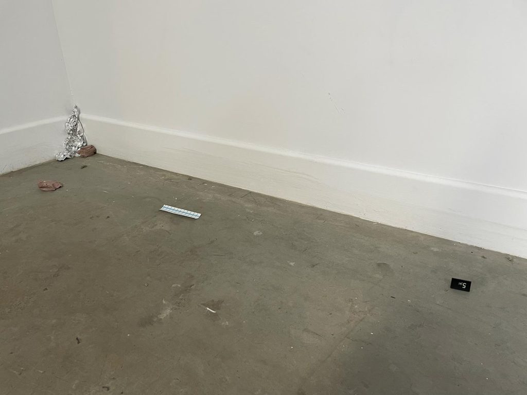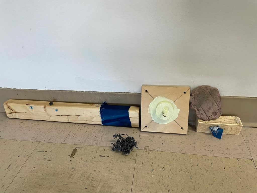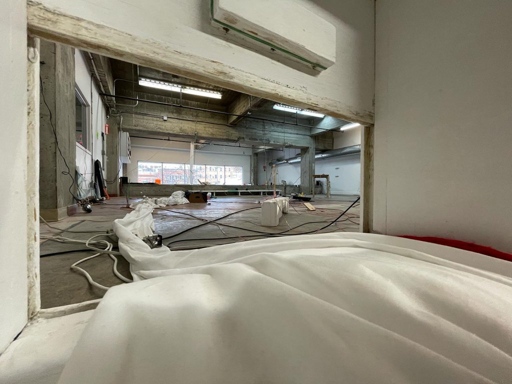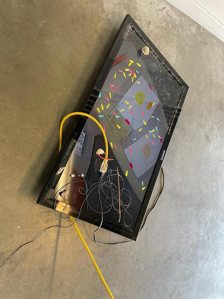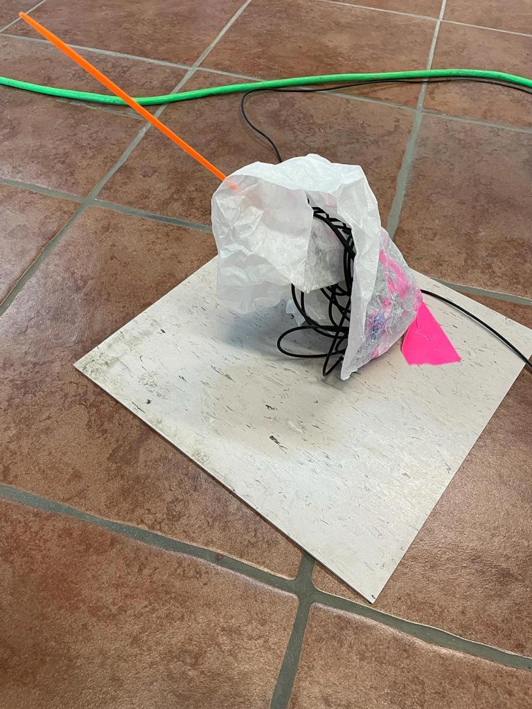 L’improvisation est une méthode centrale dans le cadre du projet Agence Augmentée, et ce, autant dans mes recherches performatives que j’ai réalisées seul à l’été 2022 que dans les expérimentations installatives, sonores et performatives réalisées en collaboration avec Isabelle Lapierre, Katia Martineau, Mathieu P. Lapierre et Vincent Thériault à l’été ainsi qu’à l’automne 2022. Une des tactiques pour organiser les divers matériaux constituant l’installation présentée à la Galerie des arts visuels de l’Université Laval à l’automne 2022 consistait à être attentivement à l’écoute de tout ce qui se trouvait déjà dans l’espace pour que celui-ci puisse être lu comme une partition guidant nos improvisations installatives. En fait, anciennement Les Copies de la Capitale, ce lieu était loin d’être un White Cube, car il était plutôt irrégulier et « bruyant » sur le plan visuel. Ainsi, je demandais à mes collaboratrices et collaborateurs d’être à l’écoute de toutes ses taches et irrégularités afin que les objets que nous déposions dans l’espace interagissent avec celles-ci et que toutes les entités dans l’espace d’exposition deviennent interdépendantes.