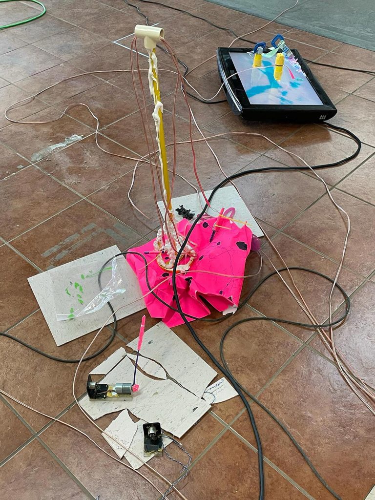 Pour cette exposition, j’avais également réalisé une vidéo à partir de la documentation d’un processus de recherches performatives qui m’ont permis de créer des Entités St-Éponges Tie Wraps Siliconées qui traduisaient mes diverses postures corporelles lors de ces improvisations performatives, comme je l’explique dans la conférence performative qui inaugurait le colloque-laboratoire du mois de décembre 2022Cette conférence peut être visionnée dans la section de ce dossier dédiée à la question de l’agentivité.. Il est également intéressant de souligner que la structure de cette conférence performative fut déterminée par des improvisations sonores à partir desquelles j’ai halluciné les différents « thèmes » abordés dans celle-ci après avoir expliqué la genèse du projet Agence Augmentée.