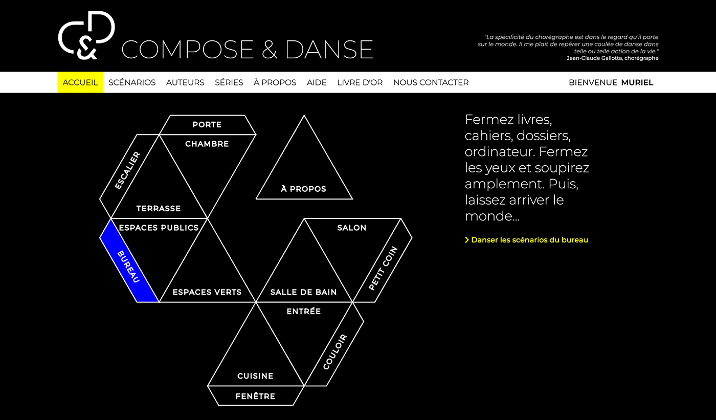 COMPOSE & DANSE est dĂ©sormais une application Web1Il faut spĂ©cifier que la recherche-crĂ©ation doctorale qui est Ă lâorigine du dĂ©veloppement de cette application Web a dĂ©butĂ© en 2017 â bien avant la crise sanitaire que nous connaissons actuellement et le basculement vers la transition numĂ©rique qui sâimpose Ă nous en 2022. : compose-danse.art/