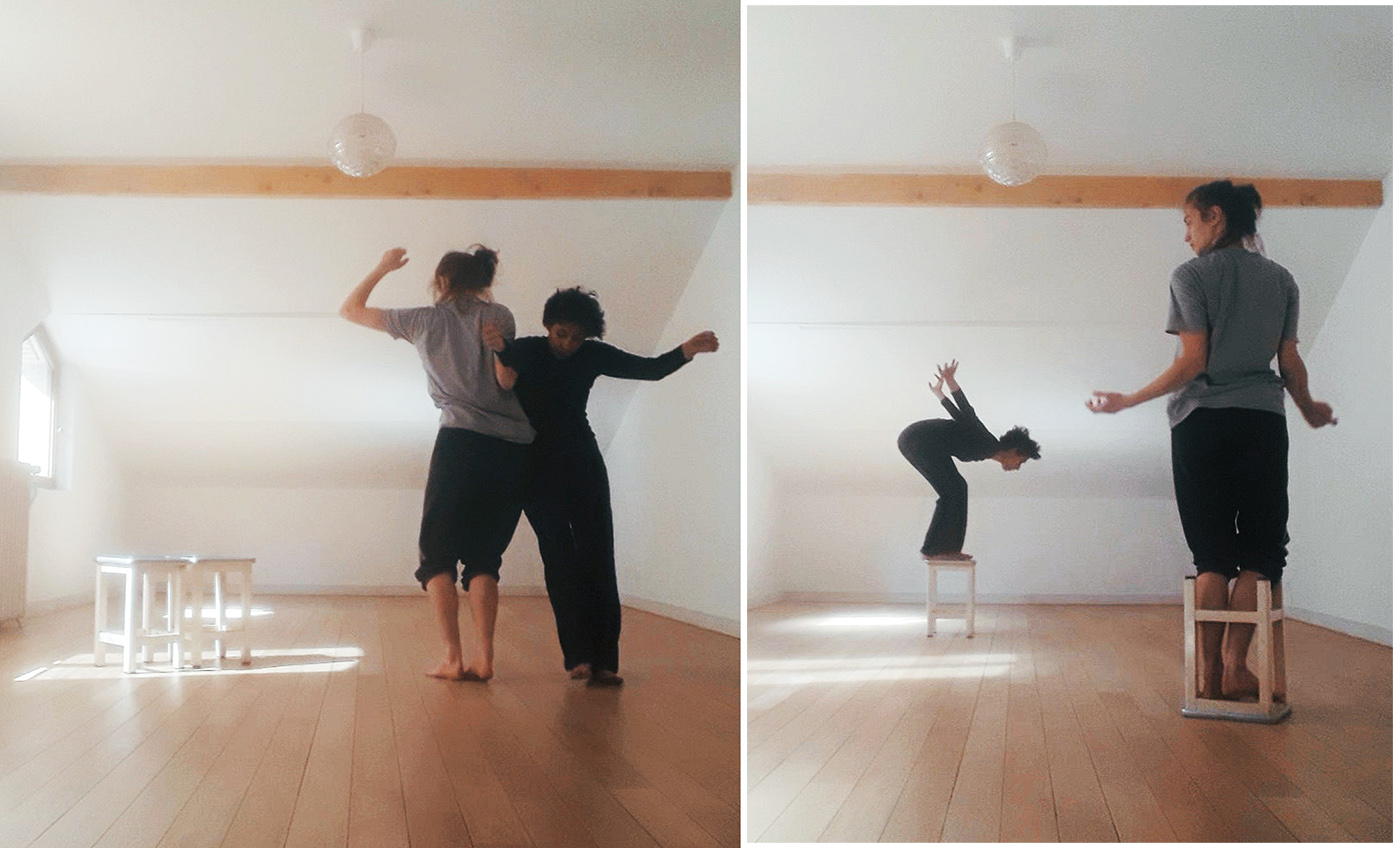 Les textes rassemblés ici sont des extraits de carnets de bord, des notes prises à partir de conversations avant ou après des séances d’improvisation dansée à deux ou à trois. Nous avons dansé à partir :