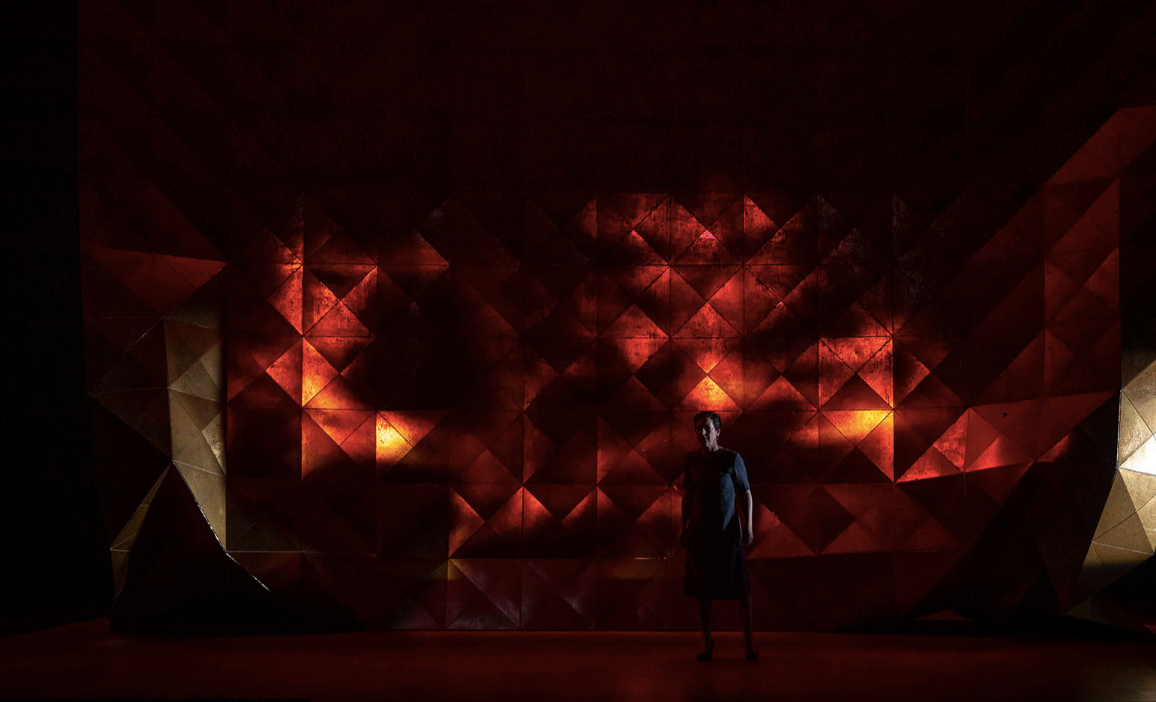 Politiques, judiciaires, érotiques, psychanalytiques, démiurgiques : avec les interprètes du spectacle, nous avons ainsi traversé bien des paysages et des dimensions pour tenter d’apprivoiser l’indomptable insolence des alexandrins de Britannicus. En dernier ressort, c’est pourtant un voile de pudeur, une sorte d’éthique, un art du masque social que nous avons aussi découvert dans cette forme suprême. Nous avons été influencé·es par la manière dont Klaus Michael Grüber, l’artiste allemand qui a signé une fameuse mise en scène de Bérénice de Racine à la Comédie-Française, a décrit la fonction de ce mètre chez Racine. Pour lui, cet instrument de douze syllabes est probablement une manière de jeter le voile ou d’encadrer des affects trop à vif, sanglants et immontrables en public. « Pour que la parole soit si froide, il faut que le cœur soit terriblement sanglant » (Grüber, cité dans Banu et Blezinger, 1993 : 17), a déclaré Grüber lors de ses répétitions. Je crois d’ailleurs que c’est en étant souterrainement convaincu de cette caractéristique de l’alexandrin racinien que j’ai proposé à Sylvie Drapeau – coeur sanglant et verbe si posé – d’incarner un personnage de la trempe d’Agrippine. Le fait de parler en vers n’était-il pas une parfaite technique de bienséance pour une mère d’empereur qui, sinon, aurait dynamité le langage à force d’éclater? Reste que les réflexions de Grüber ne se sont pas contentées de nous apprendre à constater ce paradoxe entre chaleur et froideur. Plus profondément, elles nous ont incité·es à saisir que, chez Racine, l’alexandrin sert à donner un cadre au sujet qui énonce pour lui éviter de se noyer en parlant, presque débordé par l’incommensurabilité des émotions qui l’agitent : « L’alexandrin est là pour adoucir, donner un confort, donner une arme de survie à ce qui souffre trop » (ibid. : 15); l’alexandrin est protecteur, préventif. Il conditionne la survie du locuteur ou de la locutrice : « Rimer devient une arme de survie » (idem). Il est un viatique parce qu’il peut consoler, mais aussi guérir : « Le comédien est là pour consoler ou guérir le personnage » (idem). En définitive, quel n’a pas été notre étonnement de constater qu’après bien des explorations, cette poéticité était la base même de notre expérience dans le monde des êtres humains : tenter d’assurer sa survie, maintenir le jeu social, se protéger de l’inondation, s’abriter par météorologie orageuse. Et il est envisageable que ce soit exactement cela que, soir après soir, Sylvie Drapeau mettait en place dans son interprétation de la fin du cinquième acte. Après les imprécations et la colère ultimes contre Néron l’empoisonneur, elle me semblait se réfugier dans la douceur des vers, comme une blessée sortie du bois en feu se précipiterait vers une couverture de survie, comme pour se consoler d’une tragédie à laquelle elle avait évidemment participé et qui n’était pas près de s’éteindre.