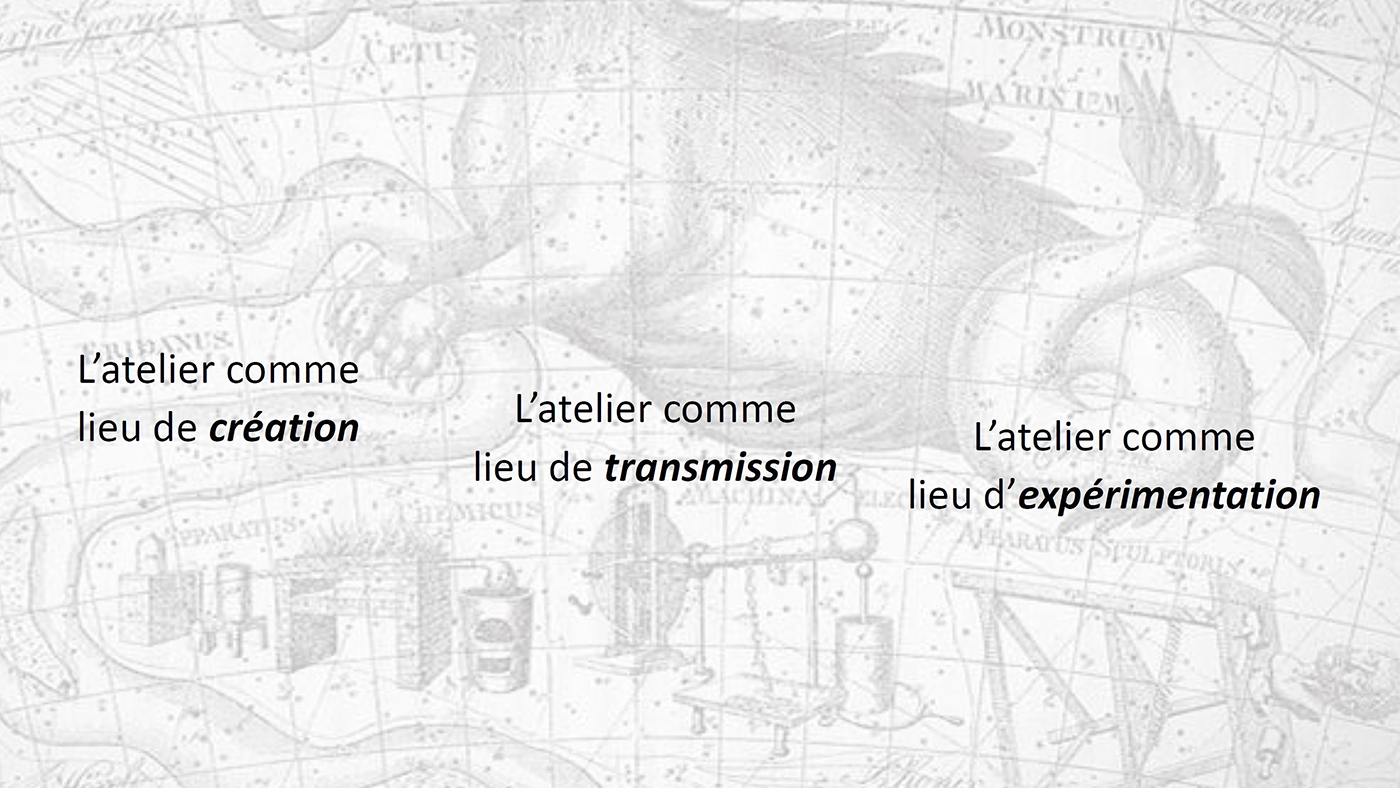 Création – transmission – expérimentation : ces trois lieux nous permettent de révéler trois conditions de l’atelier en musique, spécifiques mais complémentaires, car inhérentes à la nature multiple de la musique.