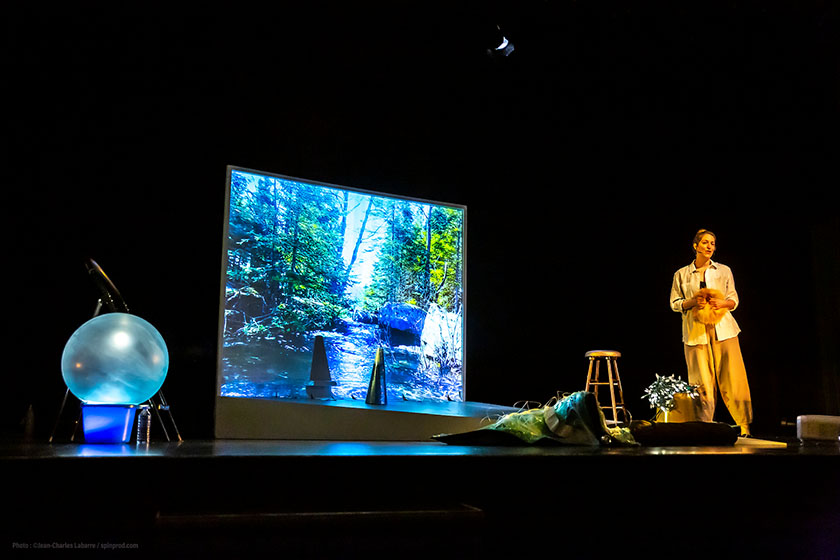 C’est dans ce contexte que j’ai invité Julie Drouin à venir improviser avec nous pour partager son savoir, en tant que biologiste de formation, sur la déclinaison de l’interdépendance du vivant. La rencontre s’est révélée marquante. Non seulement parce que Julie a une capacité extraordinaire à vulgariser les connaissances scientifiques, mais également parce qu’elle peut improviser librement et qu’elle dégage une douceur contagieuse. Un mixte théâtral incontestable!