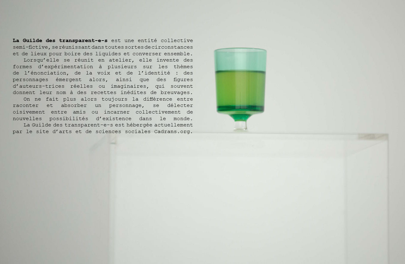 Maître Fulgur, l’un des nombreux avatars de Caens, intervient au quatrième acte de Super Impressionnisme en tant qu’envoyé et délégué de « La guilde des transparent-e-s ». Voici une brève et non exhaustive profession de foi de cette dite « guilde » :